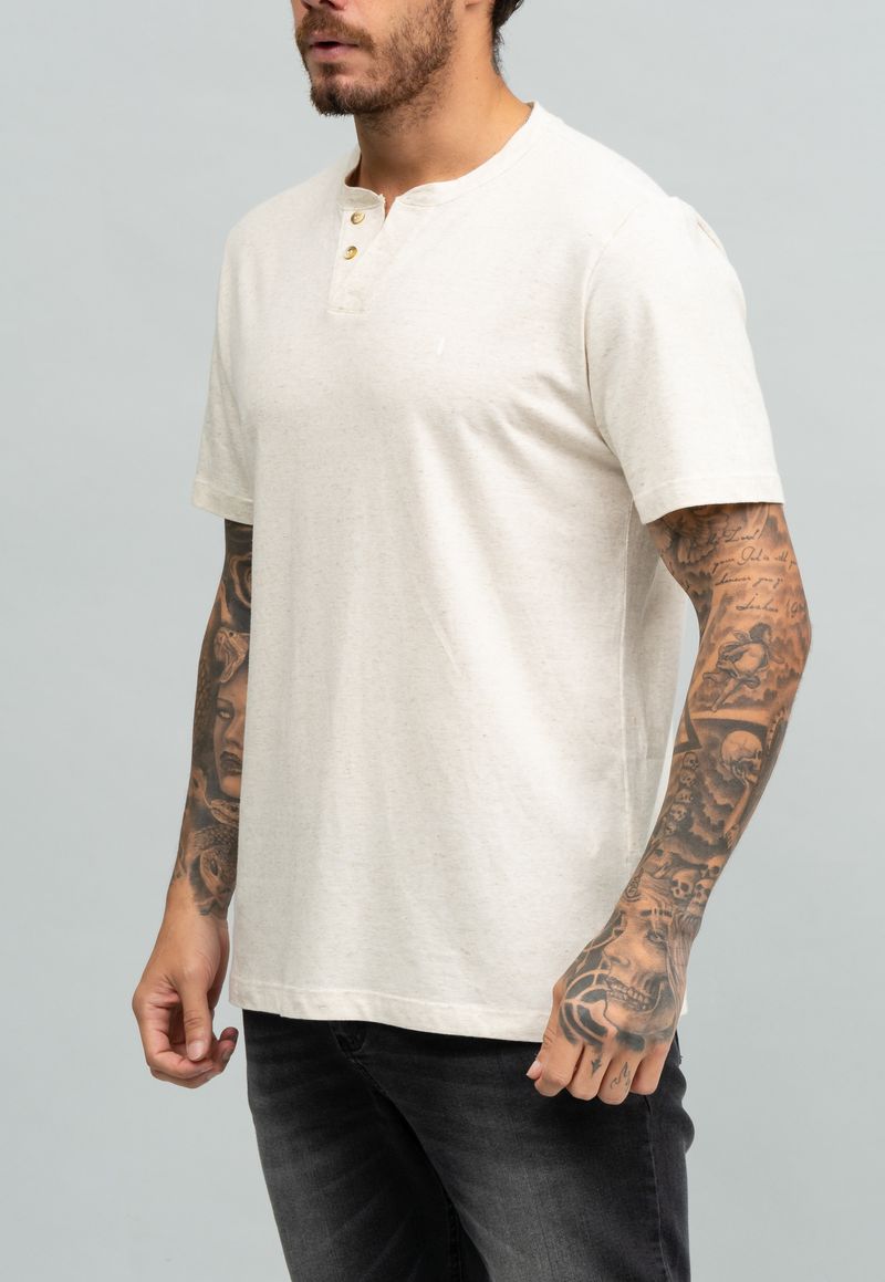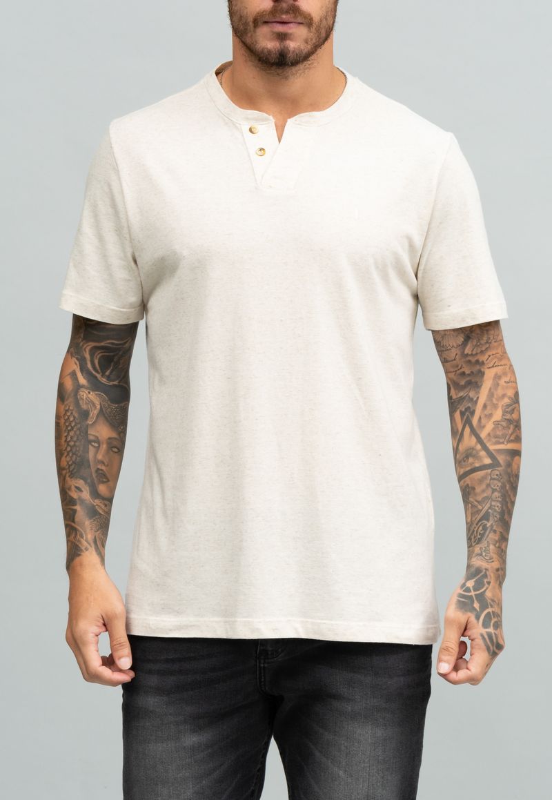 Camiseta Gola V com Botões Linho Europeu NATURAL 3G