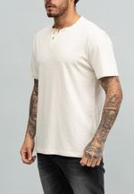 Camiseta Gola V com Botões Linho Europeu NATURAL 4G