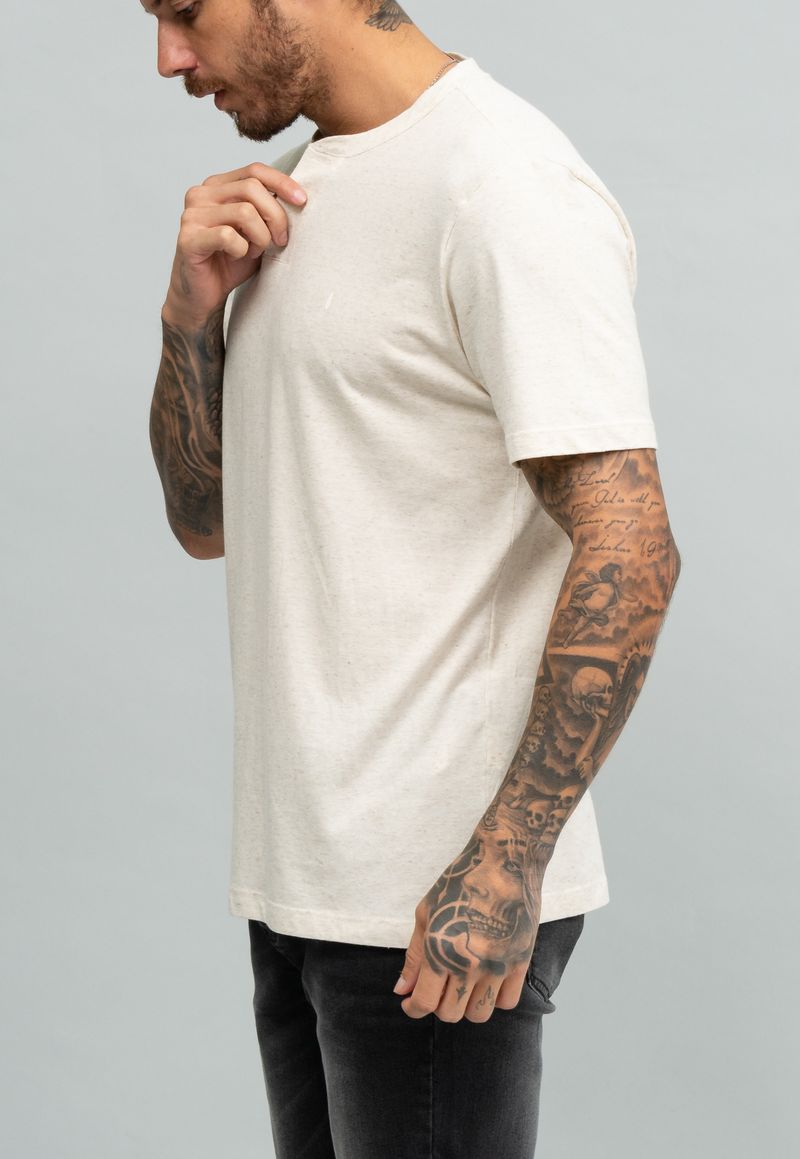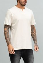 Camiseta Gola V com Botões Linho Europeu NATURAL 3G